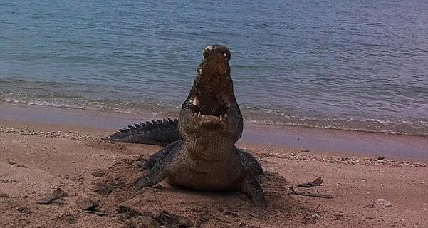 Εντυπωσιακές φωτογραφίες δόθηκαν πρόσφατα στη δημοσιότητα και δείχνουν τη στιγμή που ένας κροκόδειλος αλμυρού νερού σπάει το καβούκι μίας νεκρής θαλάσσιας χελώνας σε μια απομακρυσμένη παραλία στη βόρεια επικράτεια της Αυστραλίας.