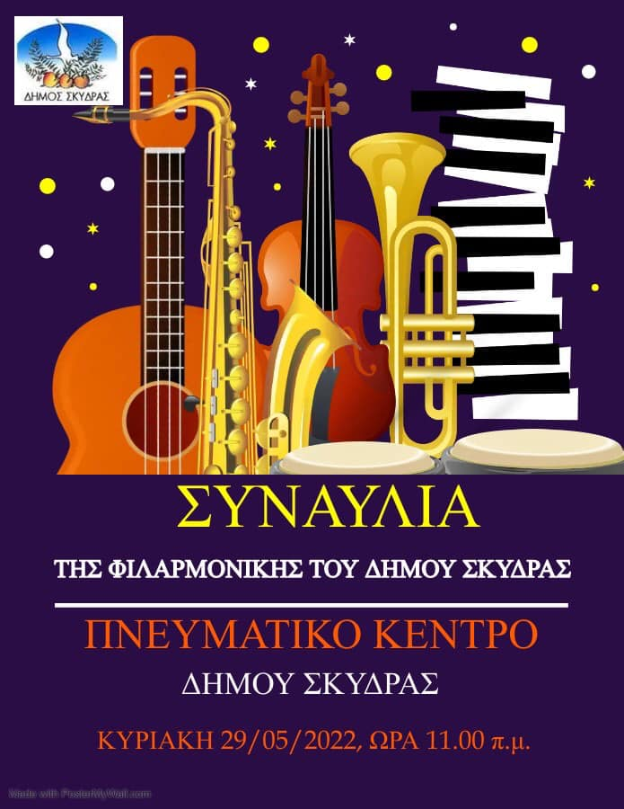 Πρόκειται για τη συναυλία που η Φιλαρμονική του Δήμου Σκύδρας θα παρουσιάσει στο Πνευματικό Κέντρο Σκύδρας, την Κυριακή 29 Μαΐου 2022 κι ώρα 11:00΄,